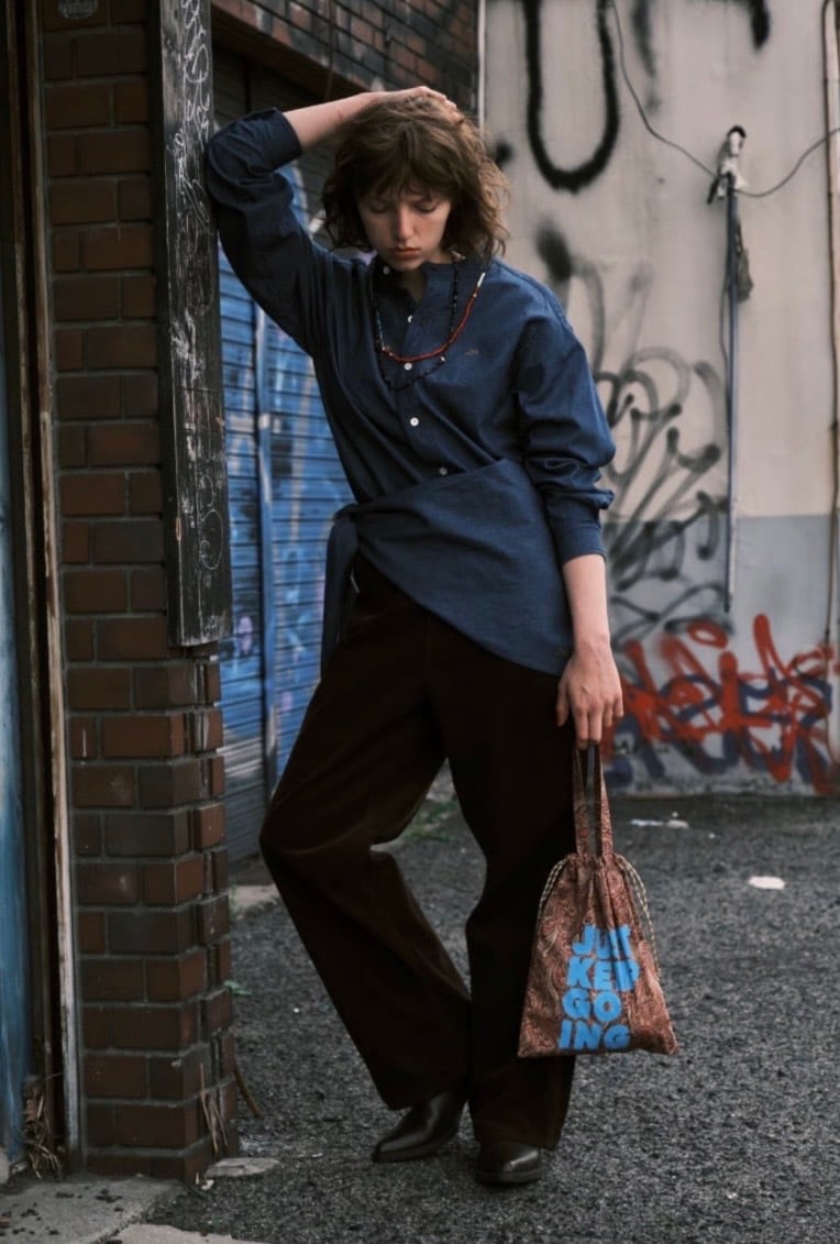 定番のワイヤー入りのデニムシャツとはひと味違う、きちんと感のあるスタンドカラーシャツ。