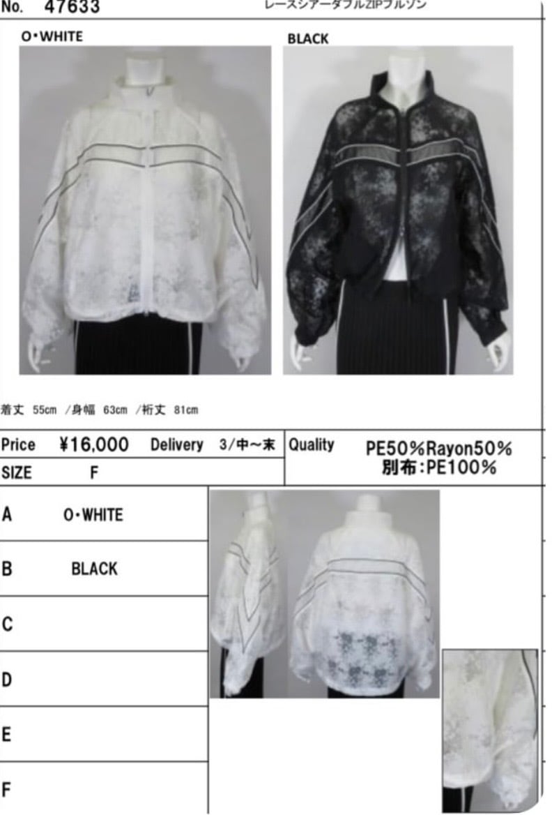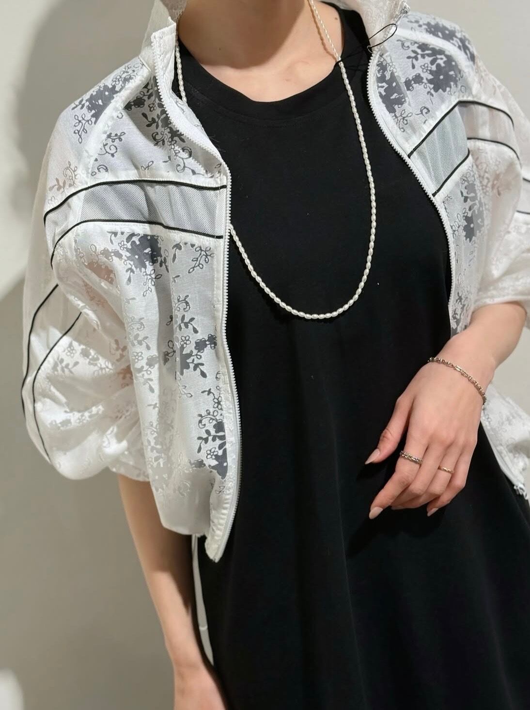 繊細なレース素材をスポーティーなブルゾンデザインに落とし込んだ、トレンド感あふれるシアーアウター。