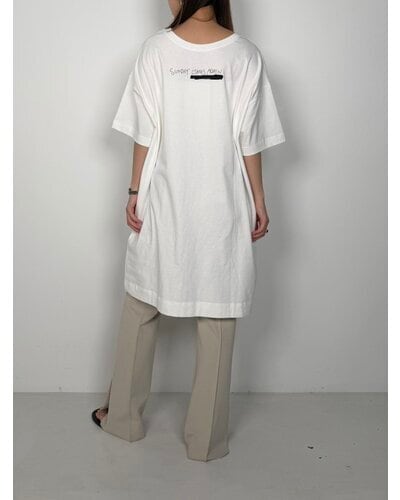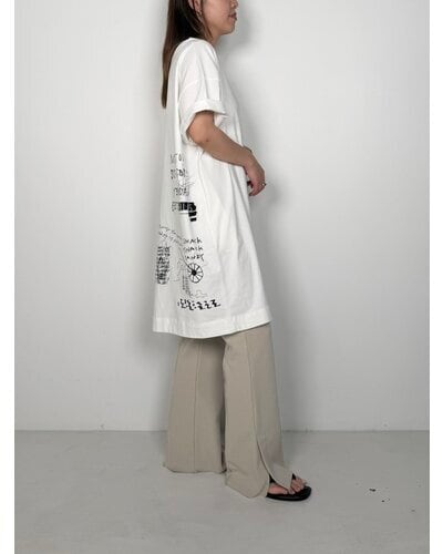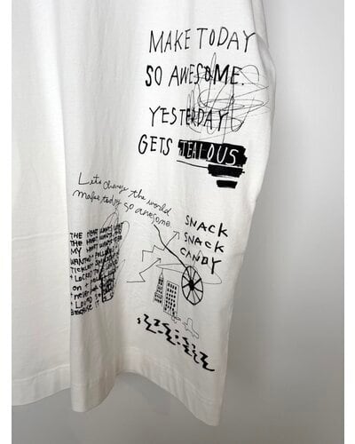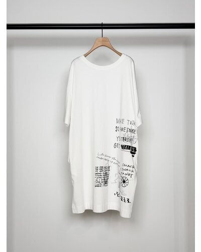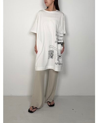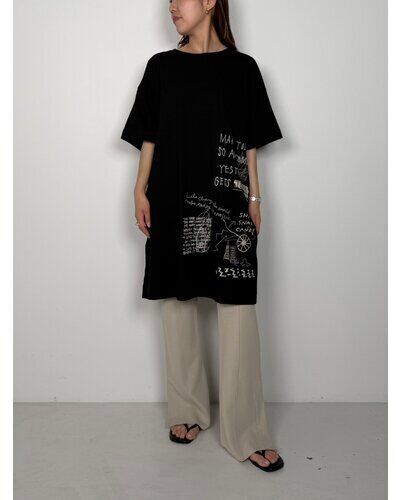 ラフな落書きプリントが印象的な、アート感覚のTシャツワンピース。