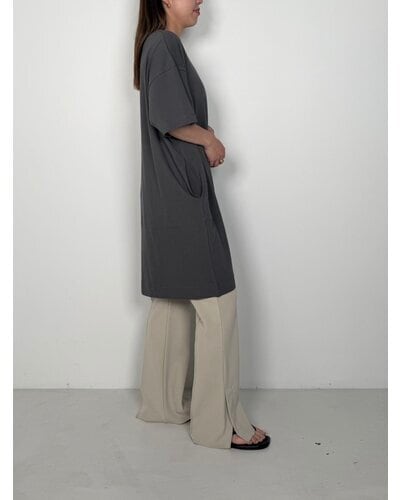 ゆったりとしたシルエットで体のラインを拾わず、1枚でさらっと着るだけで抜け感のあるスタイルが完成します。