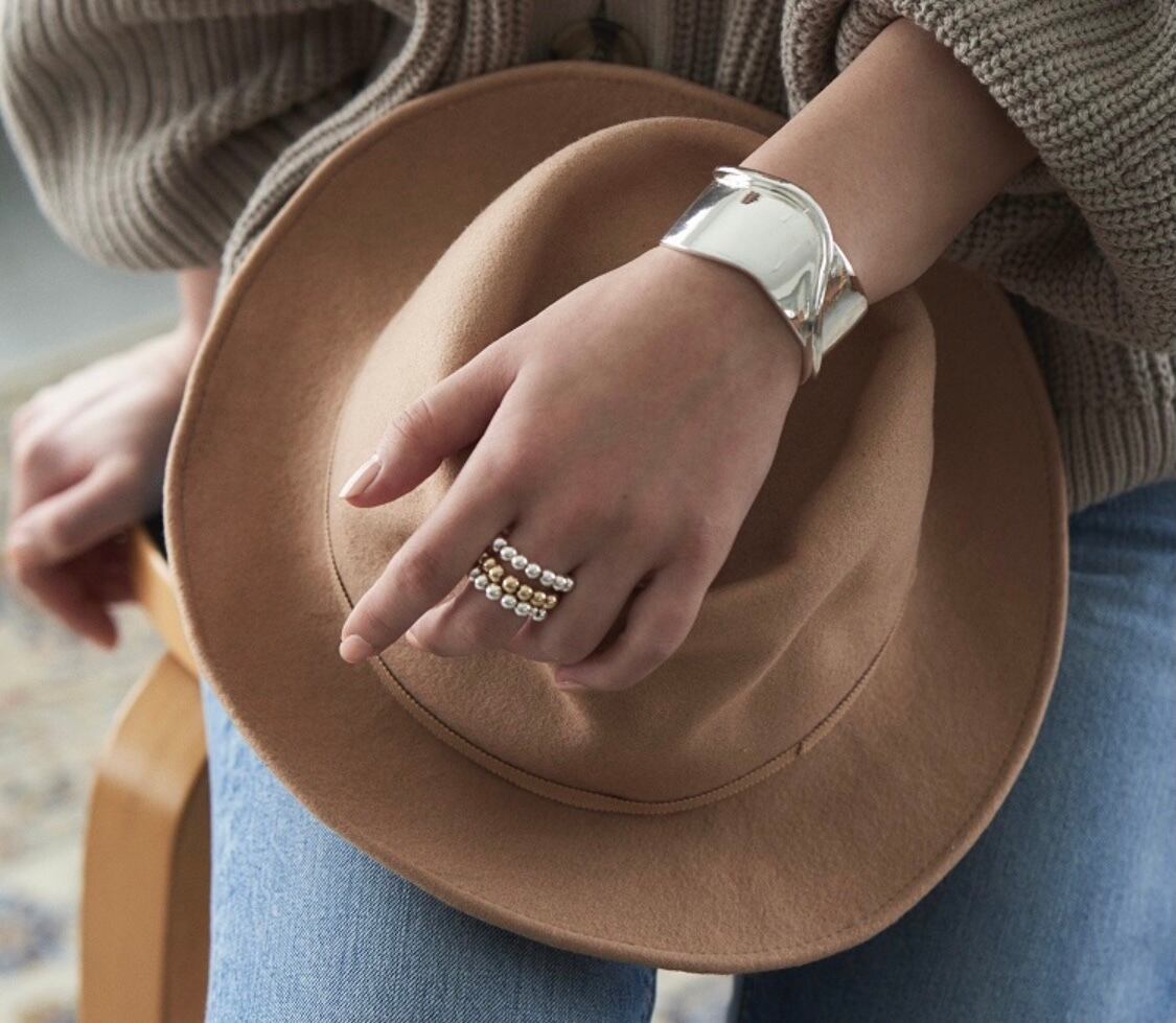 シンプルなニットの上からつけていただく事もできるので、これからの季節にも活躍するバングルです。