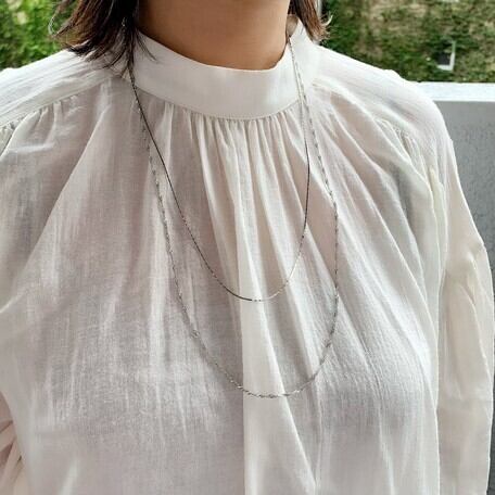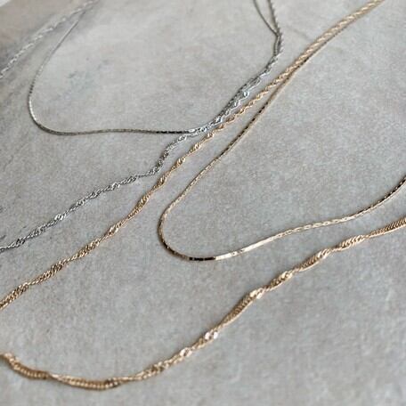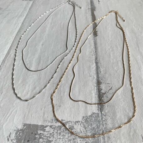 細く繊細な2本のチェーンが 上品に輝くロングネックレス シンプルデザインながら スクリューチェーンの光沢が際立ちます 長めのサイズは様々なコーディネートに合わせやすく存在感も抜群です カジュアルシーンはもちろん ワンピース等のフェミニンな スタイリングとも好相性です◎ カラーはSILVER・GOLDの2色になります。 サイズ 57/68cm ■素材 合金