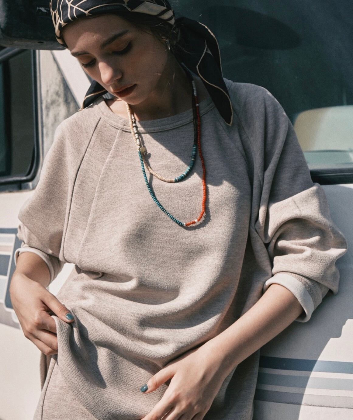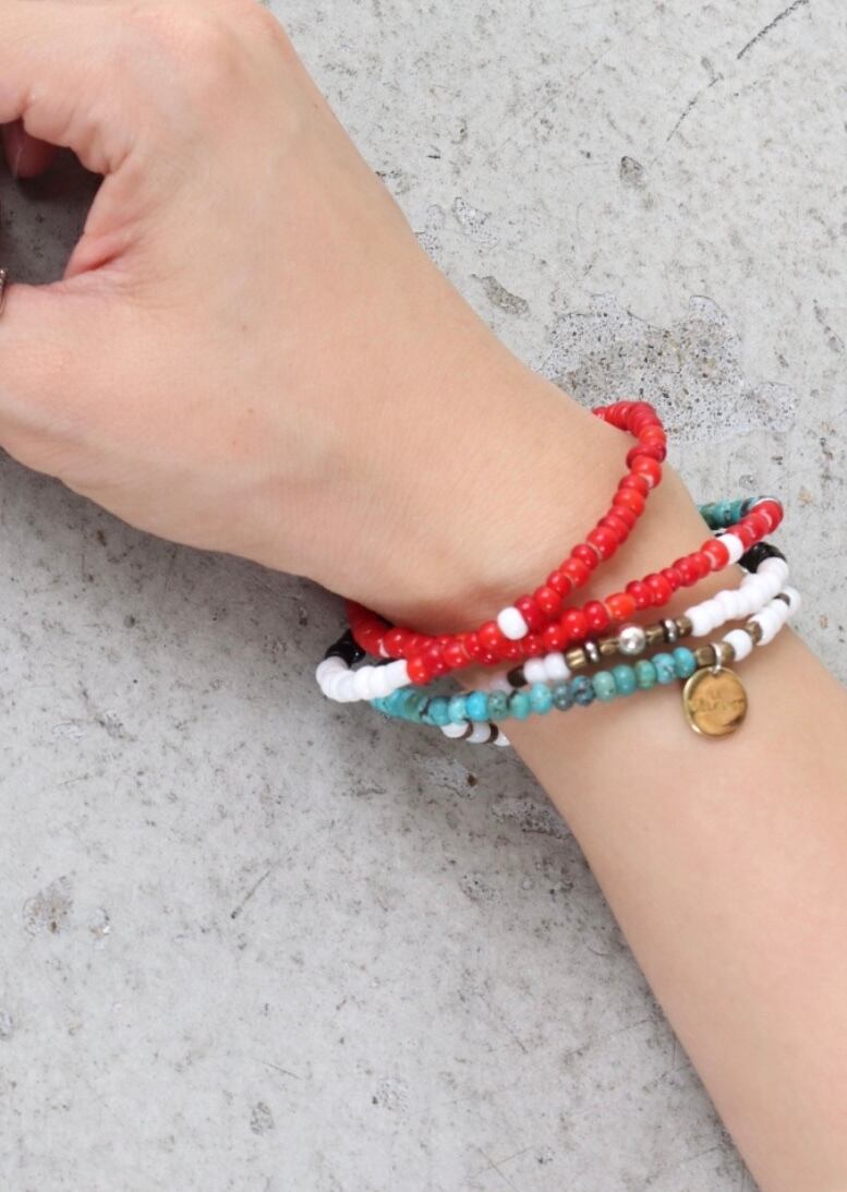 パーツには、「TradeBeads(トレードビーズ)と呼ばれる、古くは貿易の 通貨として使われ、世界中を旅してきた100年以上前のアンティークビーズ」 「天然石を使用した、現在の職人が手作業にて製作するハンドメイドビーズ」 などを使用。金属パーツも昔から使われ続けている素材のシルバーや真鍮を使い、 熟練の職人による手仕事(ハンドメイド)で質感豊かに仕上げています