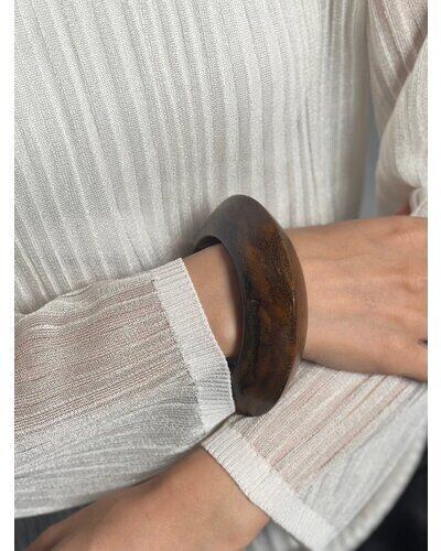 CHIGNONオリジナルデザインのウッドバングルは、フィリピンの職人さんが一つ一つハンドメイドで製作しています。大人カラーが素敵な濃いめブラウン&ブラックはいつものコーディネートを締めてくれる万能バングルです。